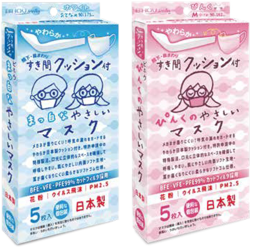 まっ白なやさしいマスク:90×175mm、ぴんくのやさしいマスク:90×162mm