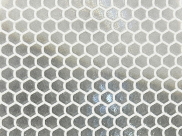 反射シートの白は製品の材質上真っ白ではなく、シルバー色になります。また、高輝度は格子柄がありますので細かい文字を印刷される場合は読みにくい場合がございます。ご用途によりお選び下さい。